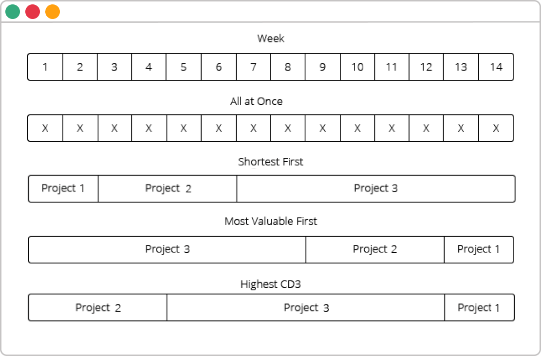 Another effective approach is to calculate each project's CD3 score (by dividing the project's value by its duration) and sequence them accordingly.