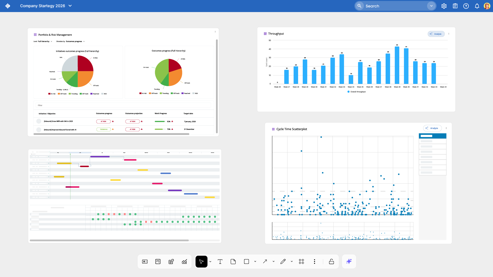 Pare de usar ferramentas separadas para alinhar objetivos com execução. Traga seus OKRs, KPIs e entrega de projetos em um único sistema.